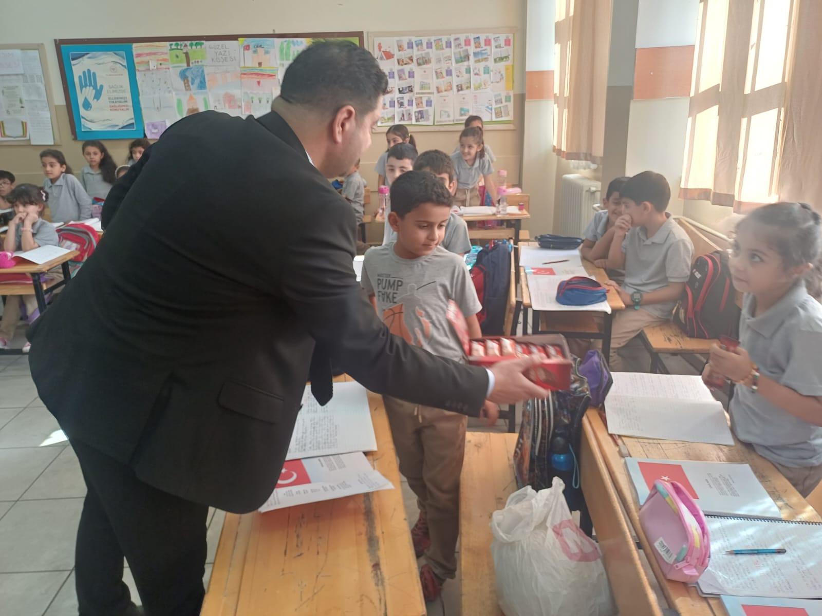 Mektup İlköğretim Haftası'nda Posta Dağıtım Görevlisince öğrencilere ulaştırılmış PTT Baş Müdürü Muzaffer Yaşar etkinliğe yardımcıları ile beraber iştirak ederek öğrencilere ikramda bulunmuştu.
